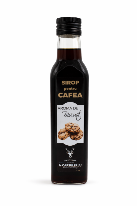 Descopera gustul delicios al siropului pentru cafea Cookies 250 ml de la La Capsuleria, perfect pentru a adauga note dulci si aromate bauturilor tale preferate. Inspirat din aroma clasica de biscuiti proaspat copti, acest sirop pentru cafea ofera un plus de savoare fiecarui espresso, cappuccino, latte macchiato sau frappe.