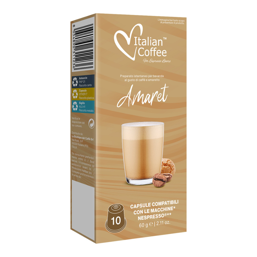 AMBALARE: Un pachet de 10 capsule compatibile Nespresso®, marca Italian Coffee®.