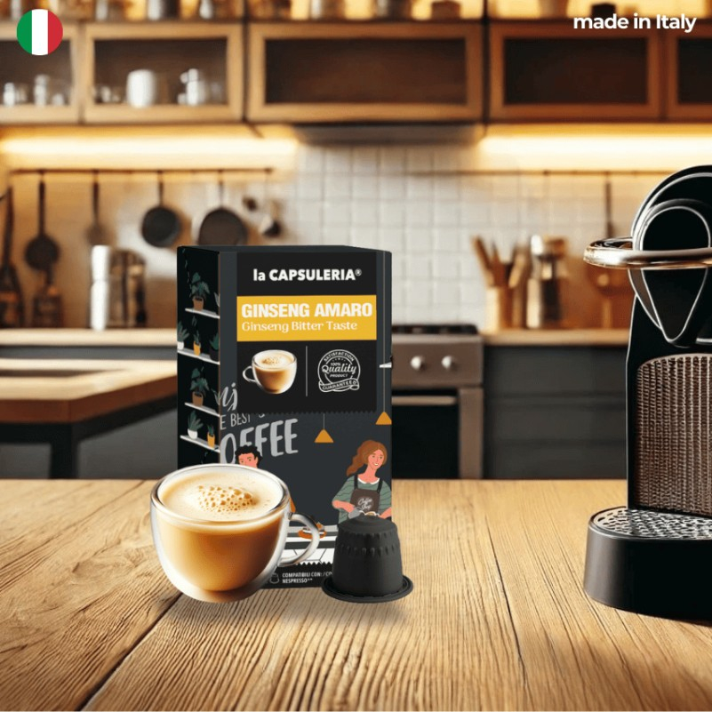 Ginseng amar in capsule compatibile Nespresso®, iti ofera posibilitatea de a avea toate beneficiile extraordinare ale radacinii ce vine din orient, intr-o singura capsula.